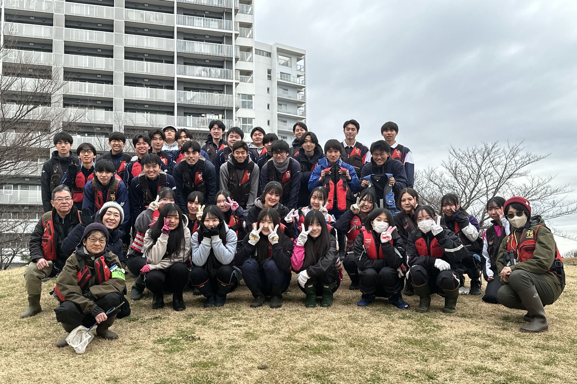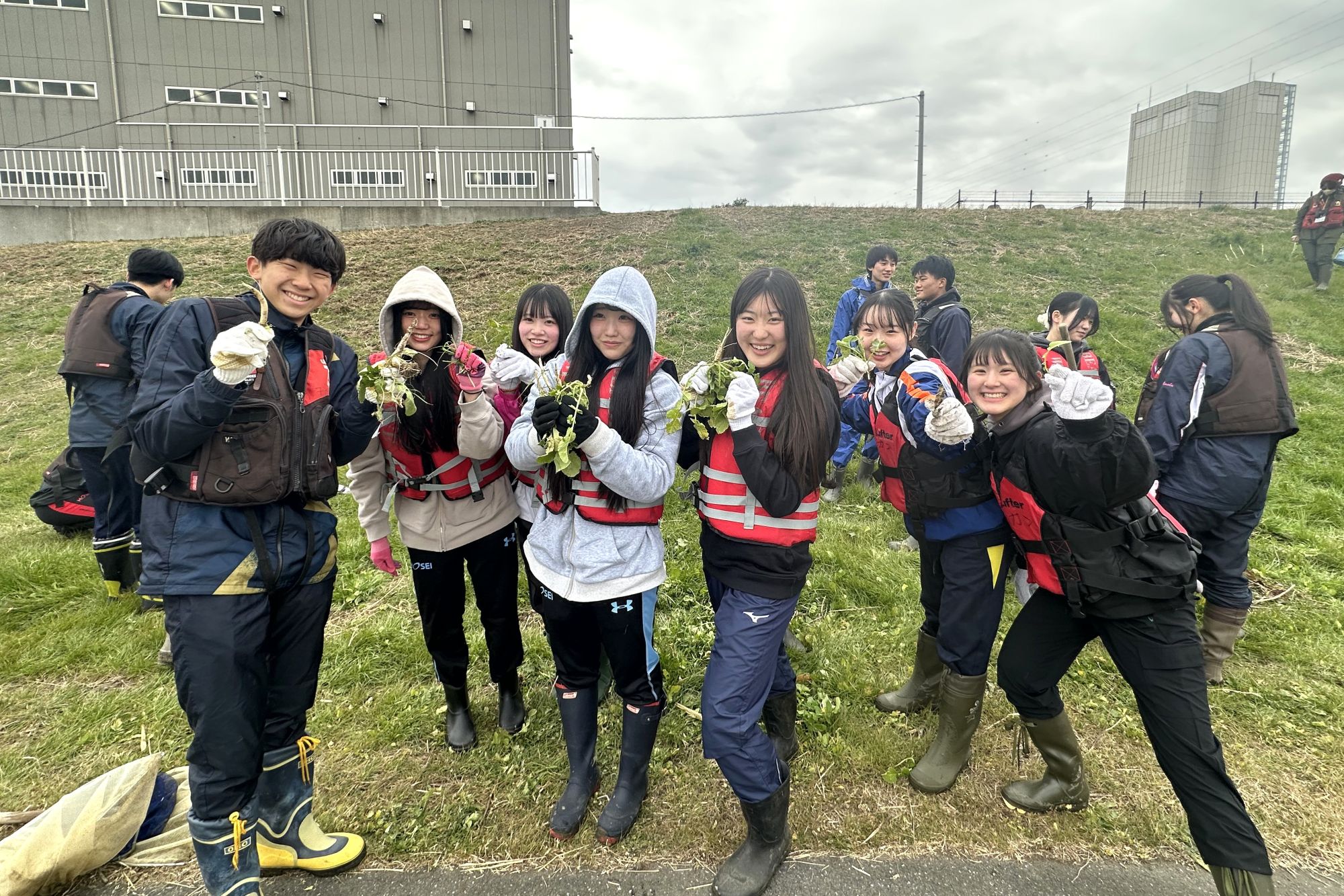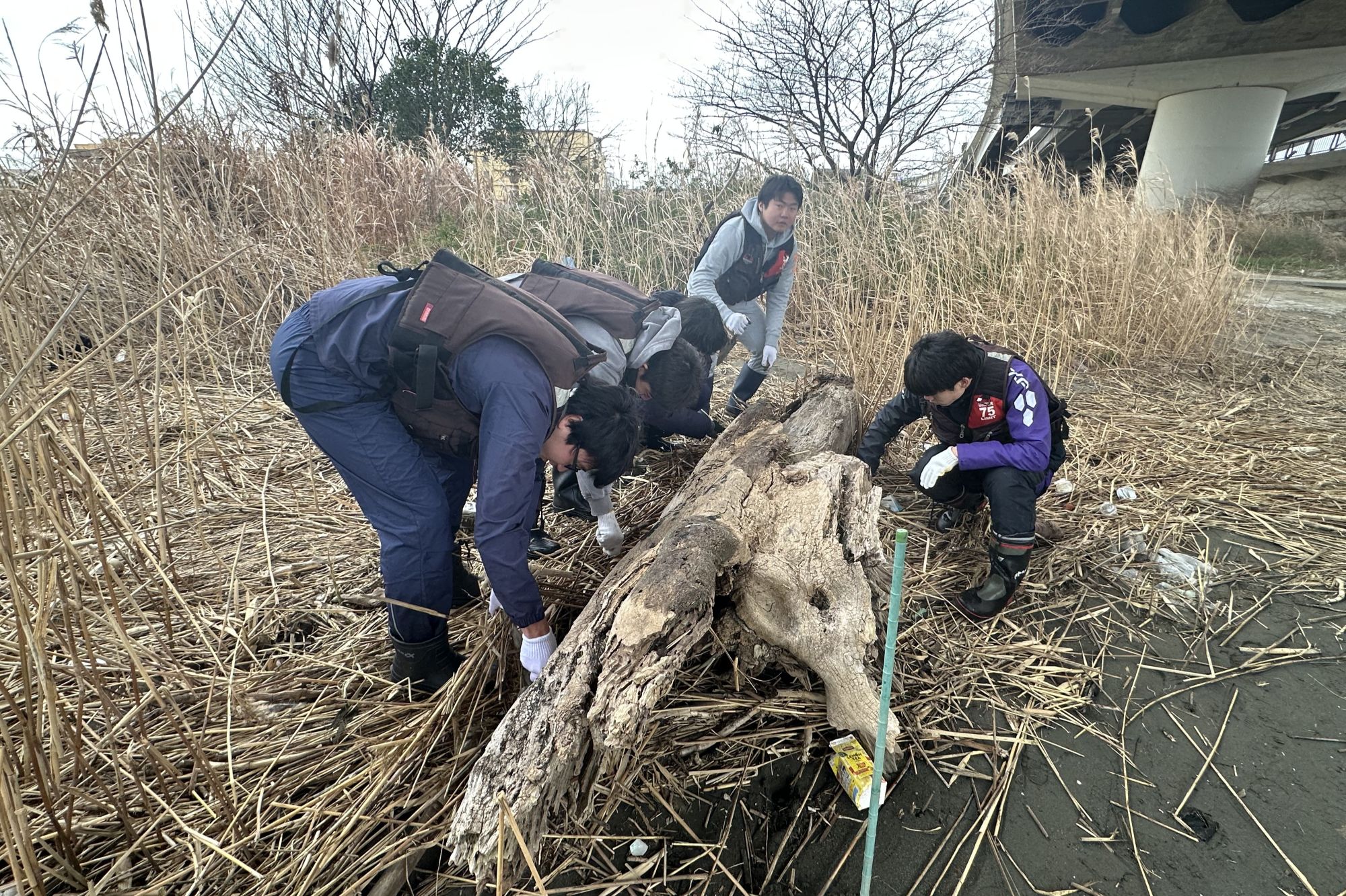 1月28日には、多摩川河口の大師河原干潟館のご協力で水辺の生き物・植物などについて実地体験をしました。真冬の極寒の気候でしたが、干潟には小さなカニやシジミ、ゴカイの仲間など多種多様な生き物がいて、春までじっとしている姿に、生徒は感心していました。その後、野生の大根「ハマダイコン」探し。思いもしないご馳走だったようで、干潟館の方のご厚意で、味噌汁を美味しくいただきました。