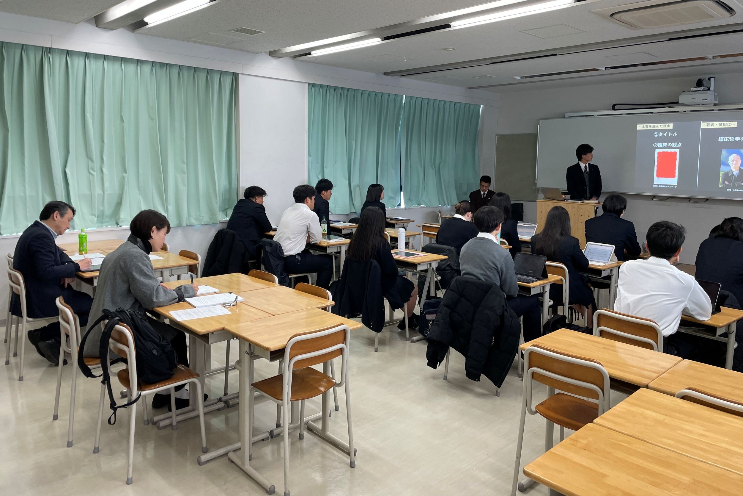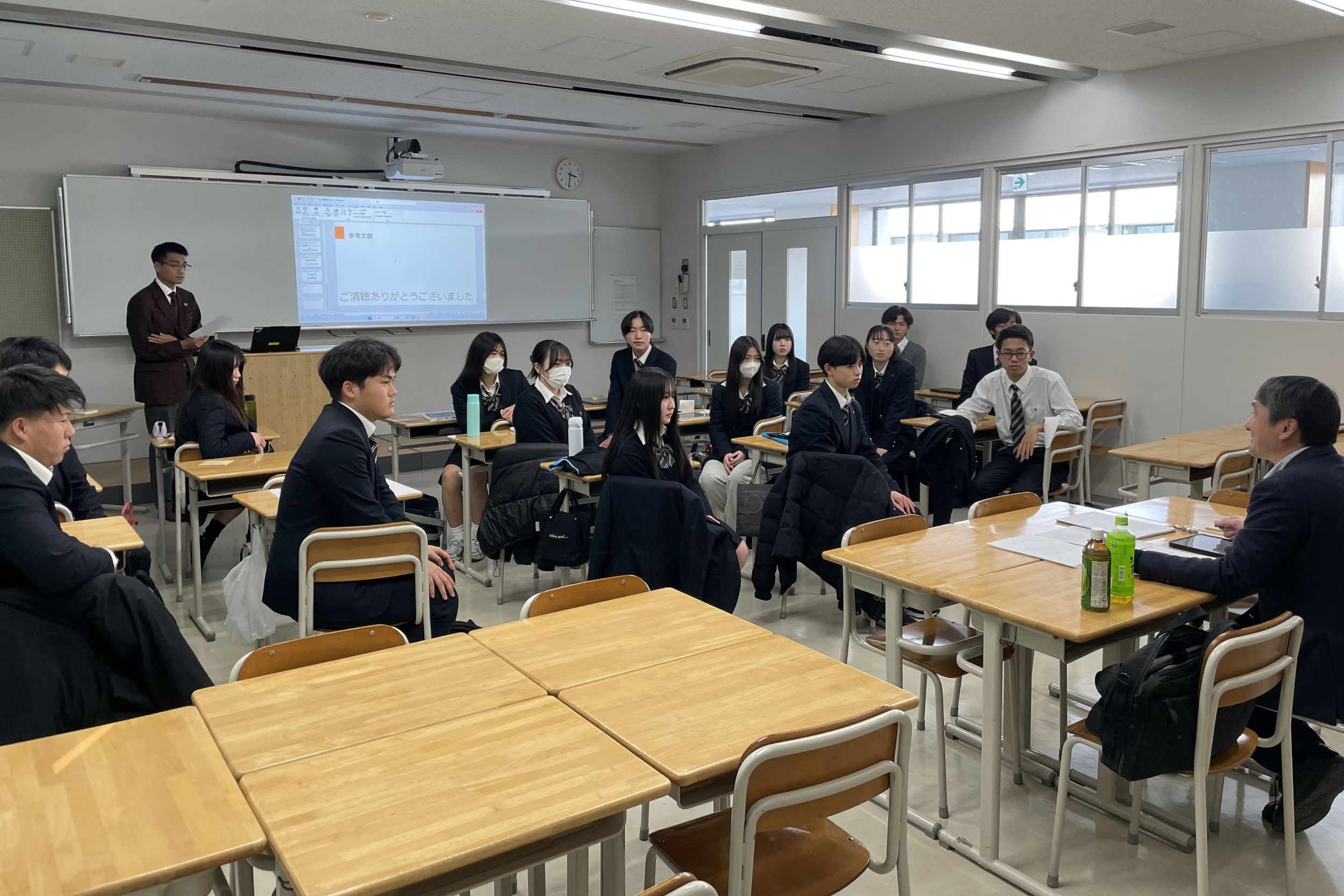 生徒は,「普段とは異なる環境」での報告,質疑・応答を経験し,大学教員からは,これまで「解答が有る質問」ばかりで育ってきた生徒に対し,「解答が無い質問」をし,「何故,そのように考えるのか」など,「正解とは何か」を考えさせる質問がなされました。加えて,「史学」・「哲学」を学ぶ意義,大学で何を学びたいのか,など今後に繋がることも話していただきました。
