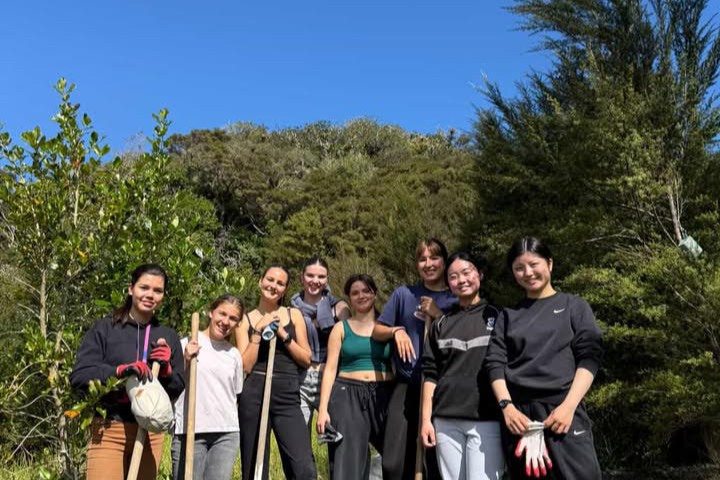 紺を基調とした、理知的で落ち着いたトーンの制服です。スクールカラーのオレンジは、ネクタイとリボンに反映されています。