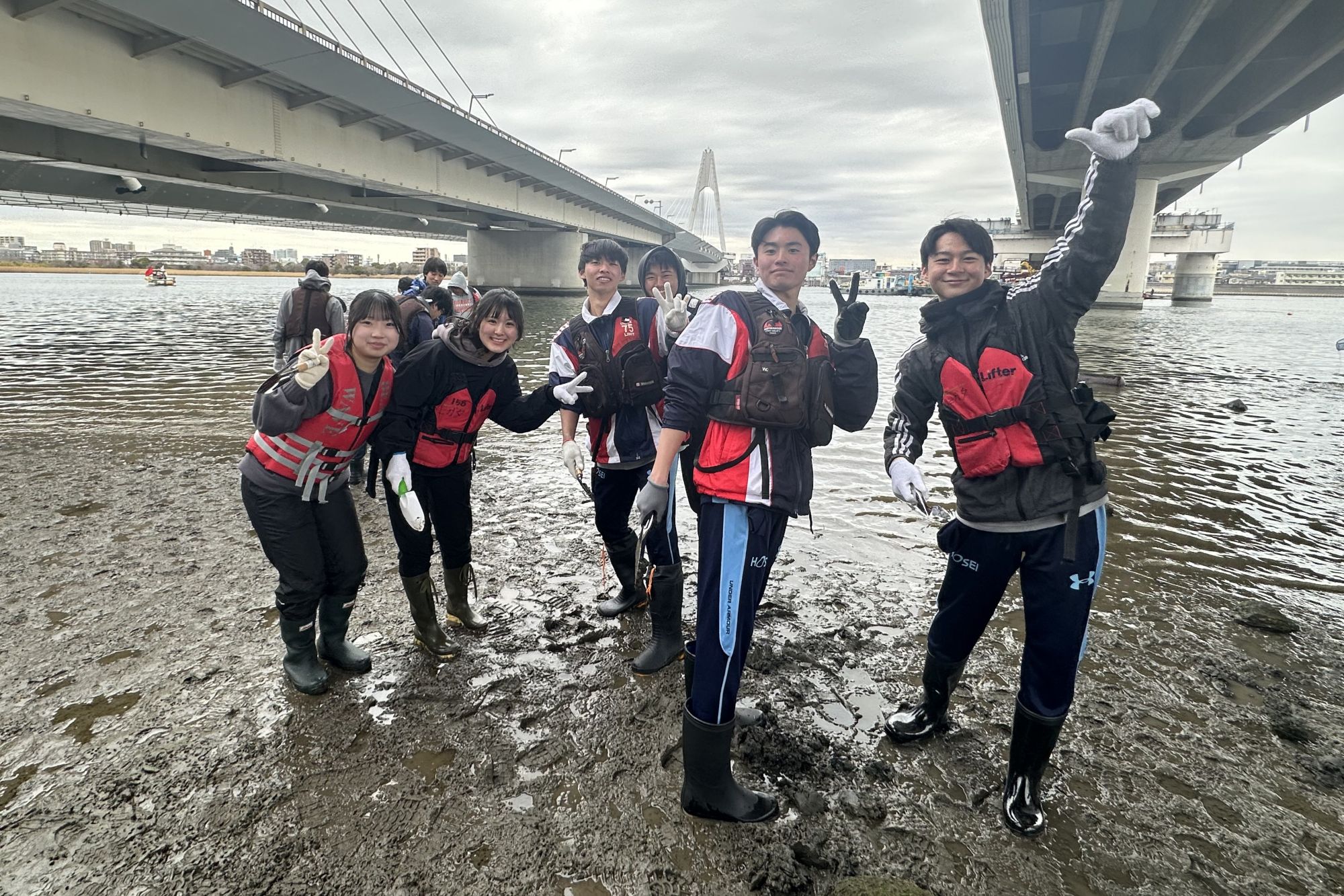 1月28日には、多摩川河口の大師河原干潟館のご協力で水辺の生き物・植物などについて実地体験をしました。真冬の極寒の気候でしたが、干潟には小さなカニやシジミ、ゴカイの仲間など多種多様な生き物がいて、春までじっとしている姿に、生徒は感心していました。その後、野生の大根「ハマダイコン」探し。思いもしないご馳走だったようで、干潟館の方のご厚意で、味噌汁を美味しくいただきました。