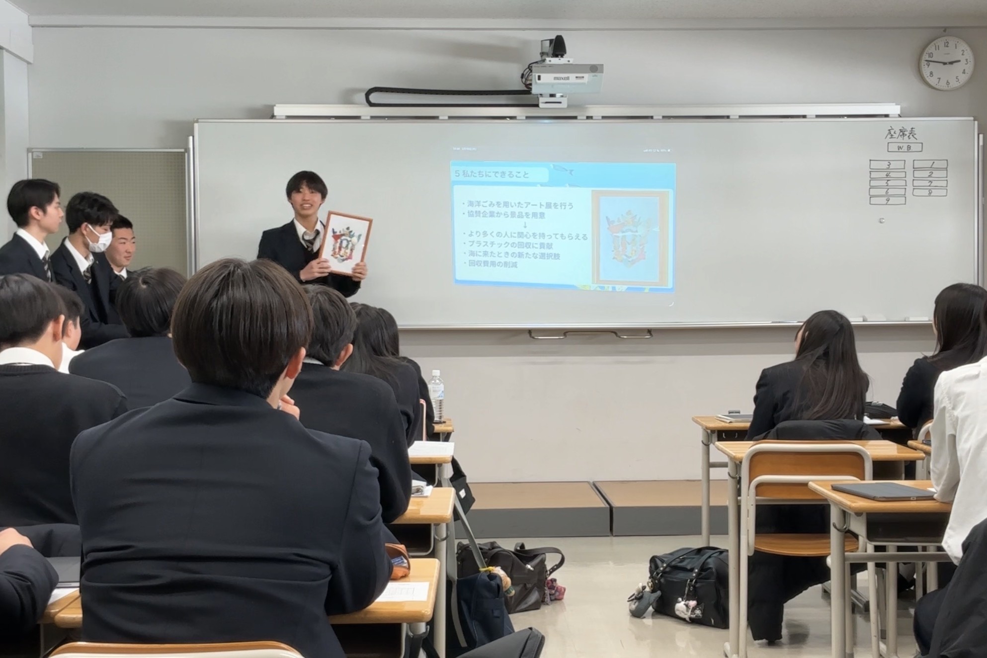 2月19日に3年3学期の取り組みの一つの到達点であるプレゼンテーション大会が実施されました。発表は、フィールドワークなど研究調査を通して議論し、問題点と解決法をパワーポイントにまとめたもので20分程度発表しました。