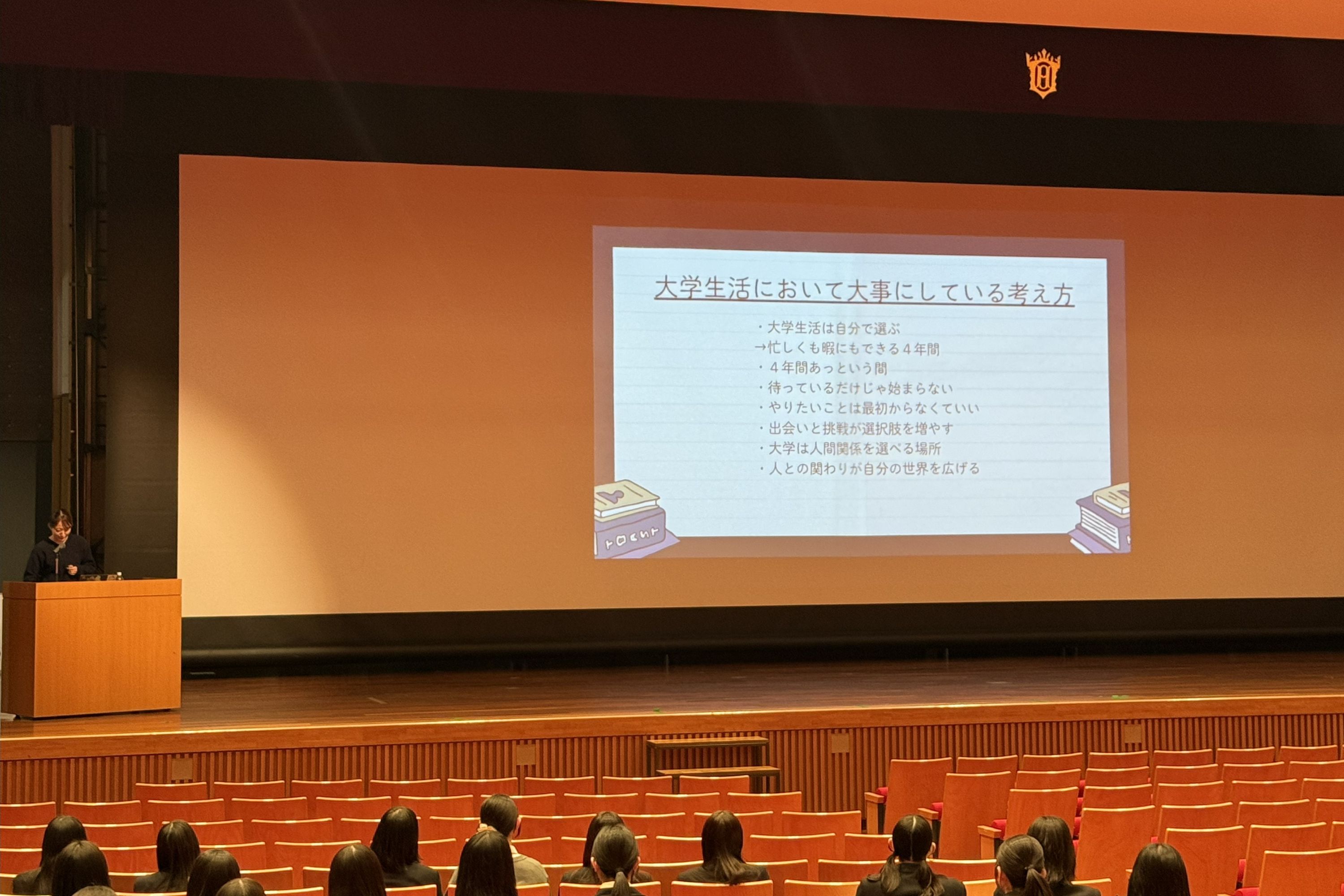 「大学内で目標を持って勉強している先輩」「大学の外の活動を充実させている先輩」「今の不安を共有できる各学科の1年生」をそれぞれにお越しいただき、3回講演会を実施しました。