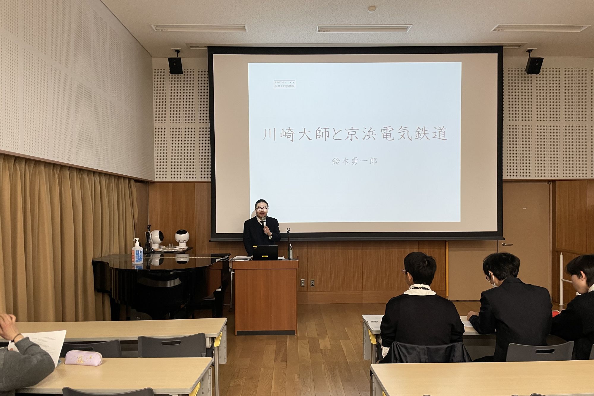 さらに,講師や卒業生をお招きして,講演会を行いました。濱口裕介さんの講演会では,蝦夷地・北海道を中心に,日本北辺史を学び,鈴木勇一郎さんの講演会では,川崎大師と京急大師線の関係を学び,水嶋桜菜さんの講演会では,大学生としての過ごし方などを,それぞれ学びました。以下,講師・卒業生を紹介します(敬称略)。
