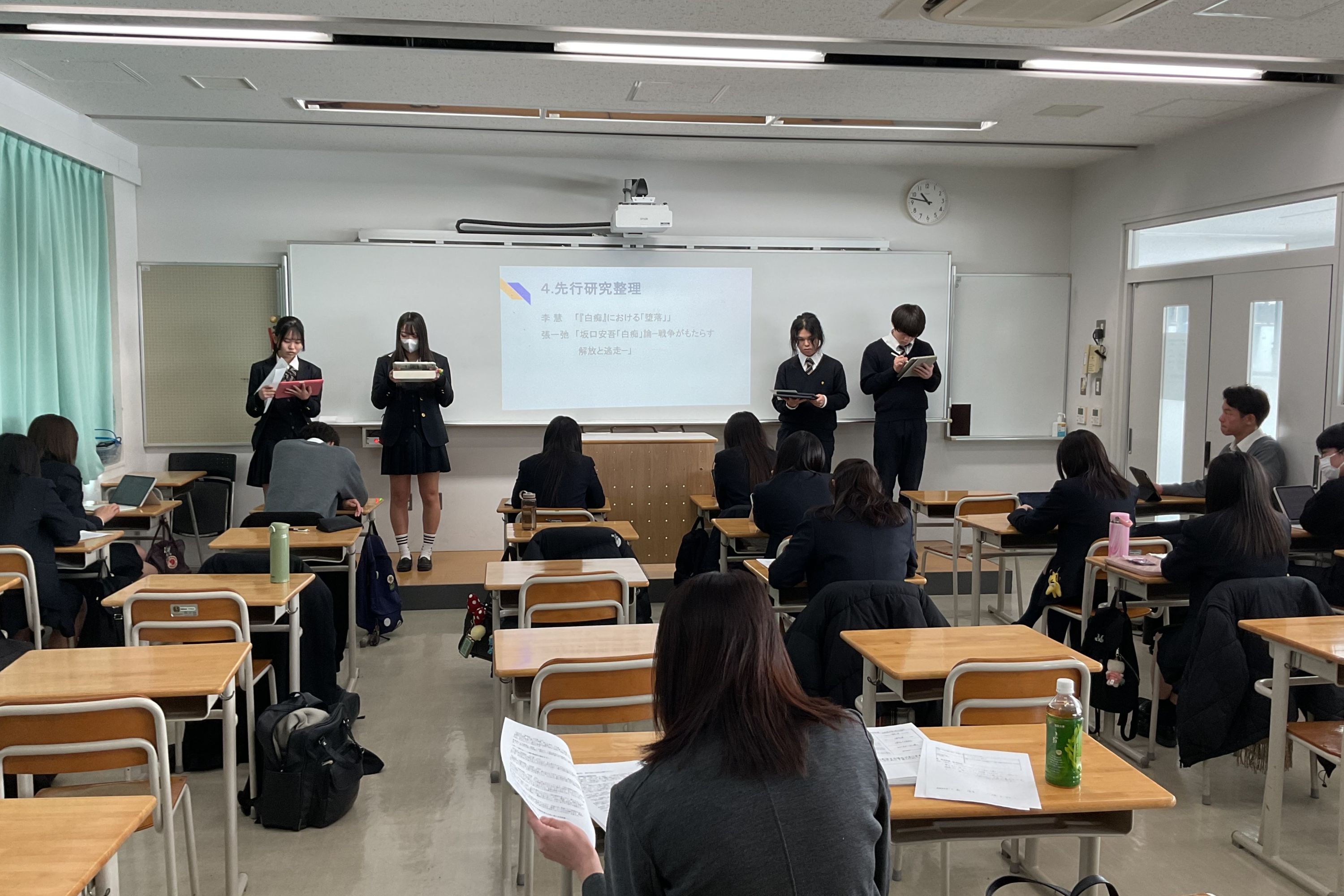 第1クールの最後を飾る“プレゼンテーション大会”が2月19日(木)に終了しました。当日は、法政大学から森陽香先生にお越しいただき、生徒たちは緊張しながらも各自がこの間論考を深めてきた成果を発表しました。