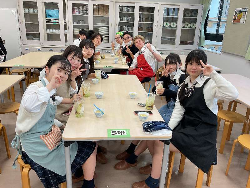 昨年の秋から10ヶ月間本校に留学していた2名の留学生(ドイツ、イギリス)が今月帰国します。6月3日(月)の放課後に調理室を借りて留学生のお別れ会を開催しました。留学生からの提案で日本のスイーツを作りたいということでしたので、白玉団子にあんこ、抹茶アイスなどをトッピングしたパフェを作って食べました。最後に留学生たちから日本での留学生活の体験についてお話を聞くことができました。お二人ともに日本が大好きでまた日本に戻ってきたいと言って頂きました。来月は中国からの留学生とニュージーランドからの留学生のお別れ会を開催します。