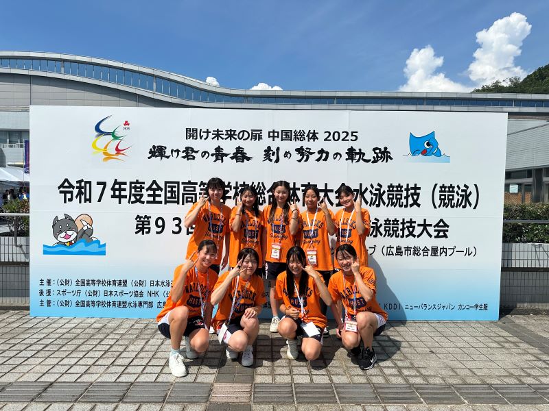 8月17日~20日の4日間、広島県のひろしんビッグウェーブにて行われた、「令和7年度全国高校総体兼第93回日本高等学校選手権大会水泳競技大会」に本校水泳部9名が出場しました。