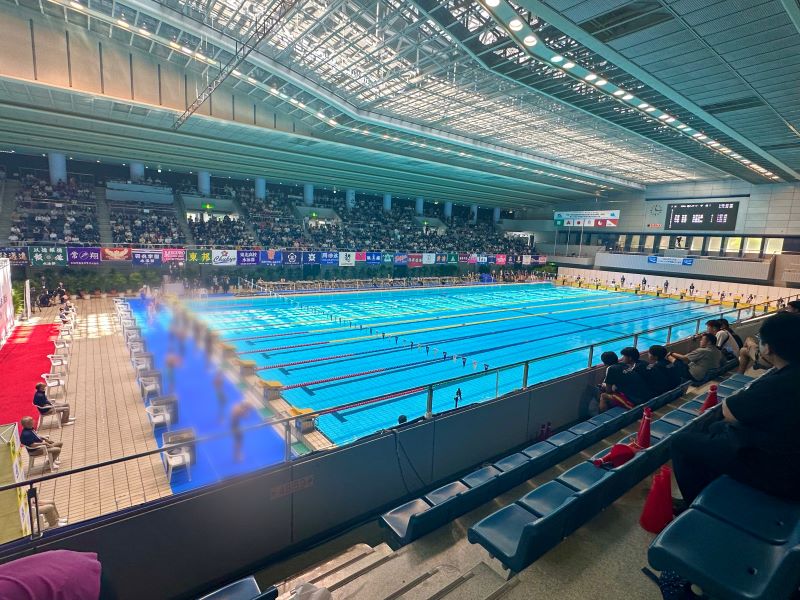 全国から標準記録を突破した選手が集まる大舞台でのレースとなるなか、参加する部員たちは自己ベストの更新、決勝進出を目指し、この大会にコンディションを合わせて臨みました。思ったような力が出せず悔しい思いをした部員、大舞台にわくわくした思いで泳ぎ切った部員、少ない人数ながらも全力で声援を送った部員、さまざまな思いの詰まった大会となりましたが、全部員が持てる、全ての力を出し切りました。