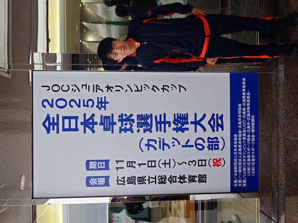 この全国大会に本校卓球部の鈴木寿弥くんが県の予選を勝ち抜き、