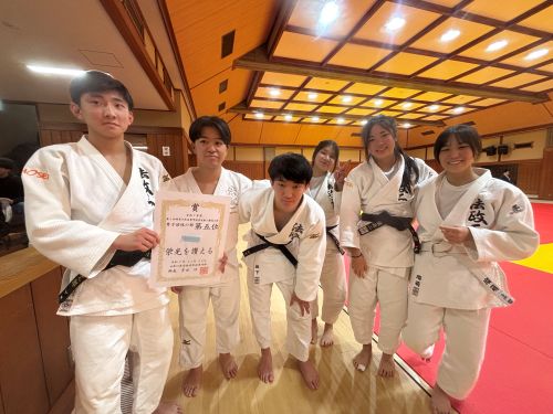 高校生は神奈川県新人柔道大会に出場しました。大会は男子5人制・女子3人制のグループリーグからはじまり、順位決定のトーナメント方式で実施されました。男子はグループリーグを1位で通過しましたが、決勝トーナメントで惜しくも敗退し、結果は5位となりました。女子も決勝トーナメントで敗退し、最終成績は3位でした。試験期間中ということもあり、体調管理が難しい状況ではありましたが、部員一人ひとりが全力で試合に挑むことができました。また、同日に行われた中学生の新人戦では、中学1年の渡邊選手が地区大会で優勝し、県大会への出場権を獲得しました。