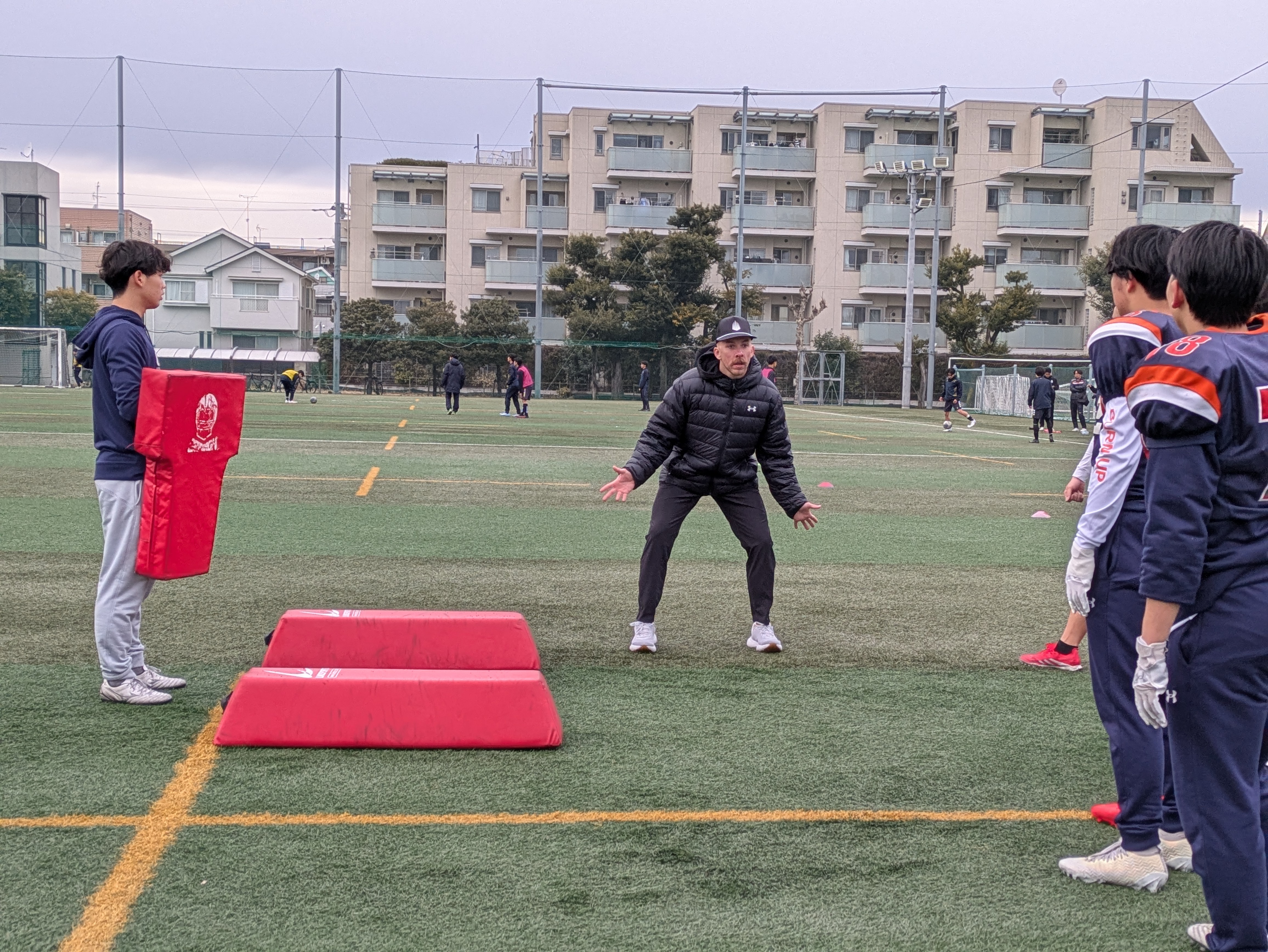 来日されていた時期に偶然タイミングが合い、QBとLBを中心にご指導いただきました。