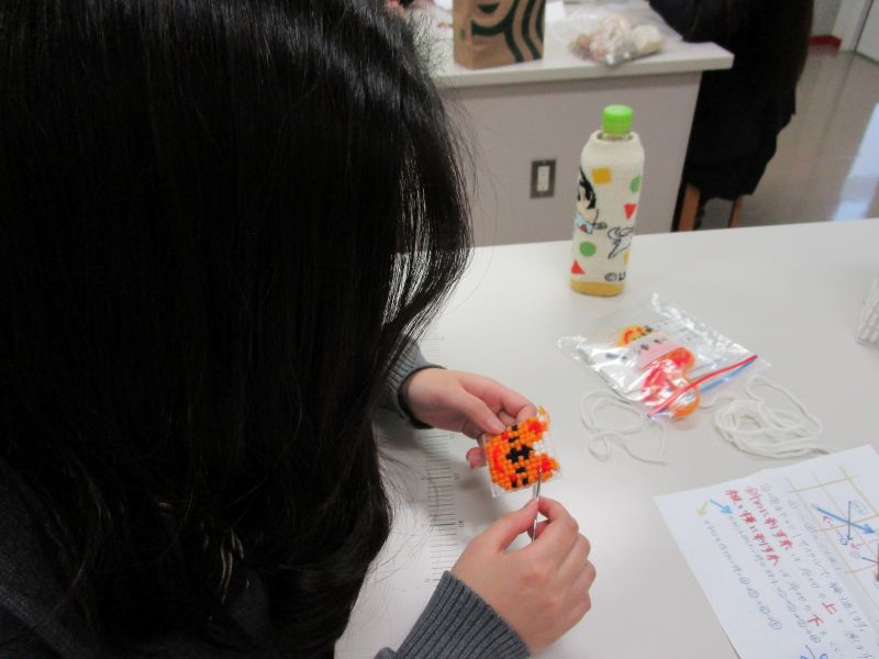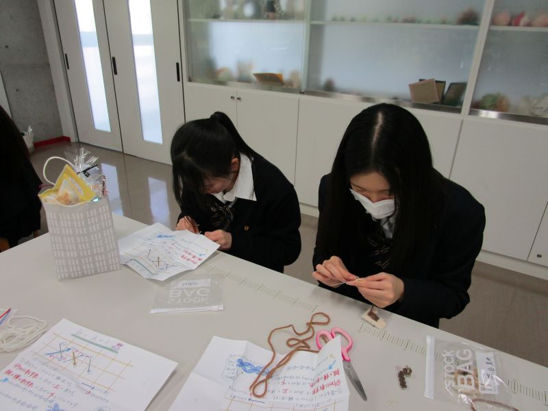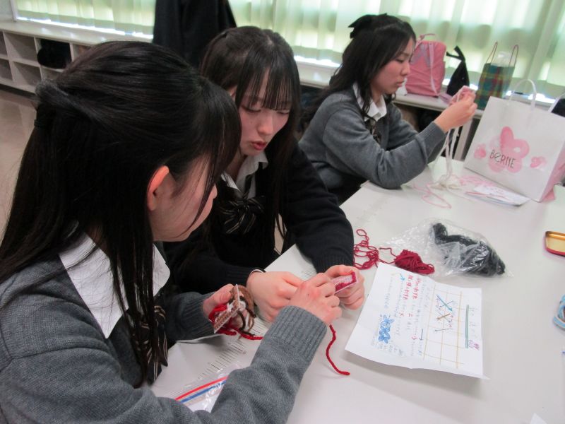 慣れてしまえば規則的な針の動かし方を繰り返すだけなのですが、2パターンの針の動かし方や、模様に合わせて目を飛ばしながら針を動かすことに戸惑う生徒も多く、「出来ない」「分からない」「もう無理」といった声も多く出て、苦戦している様子でした。