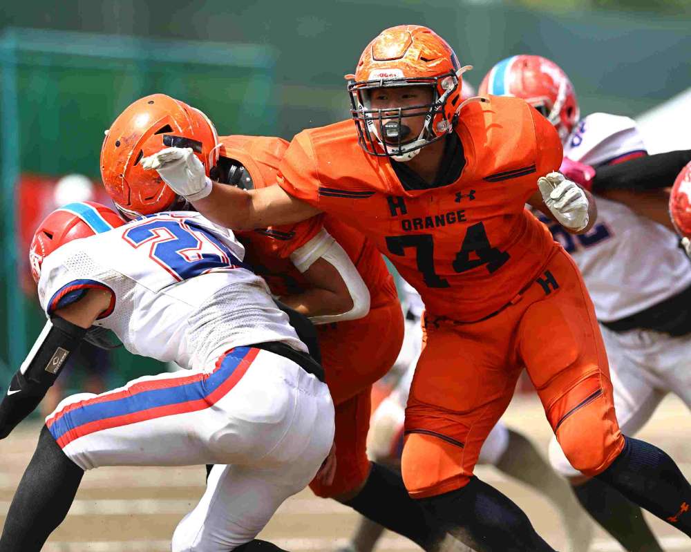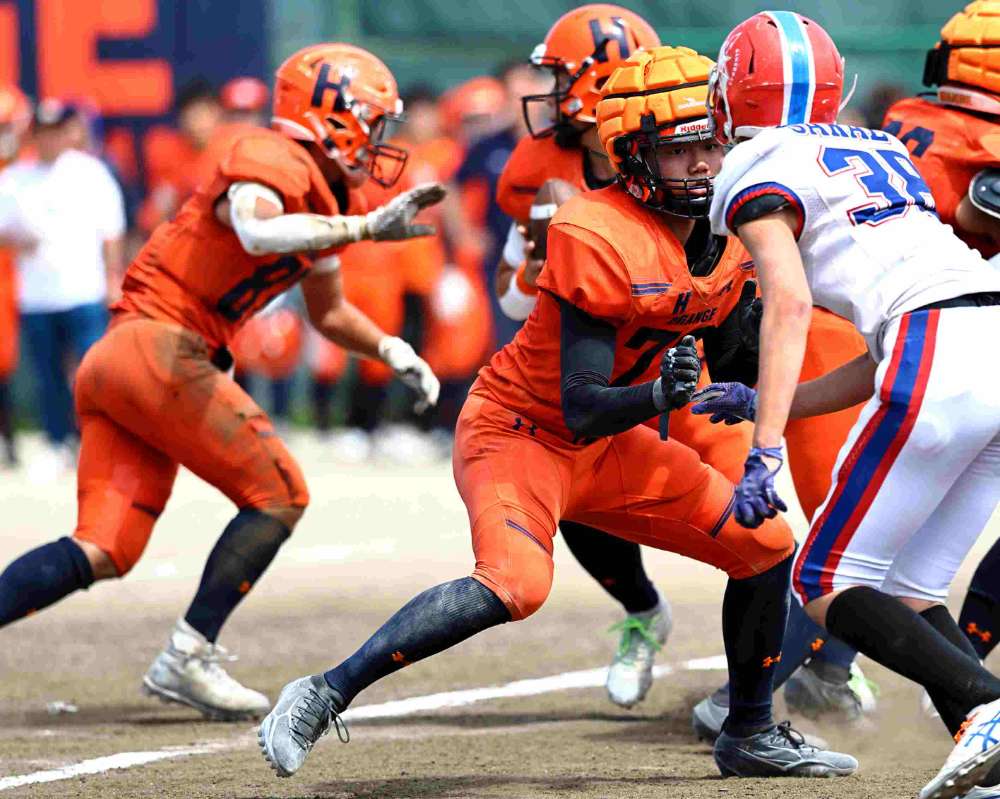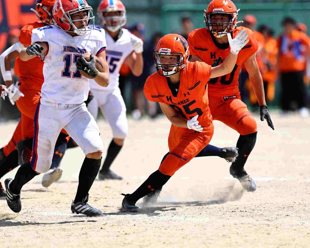 初戦は4月19日(日)横浜栄高校(会場、横浜立野高校)。最初は緊張していましたが、要所要所でプレーを決め、最終的には40対0で勝利することができました。
