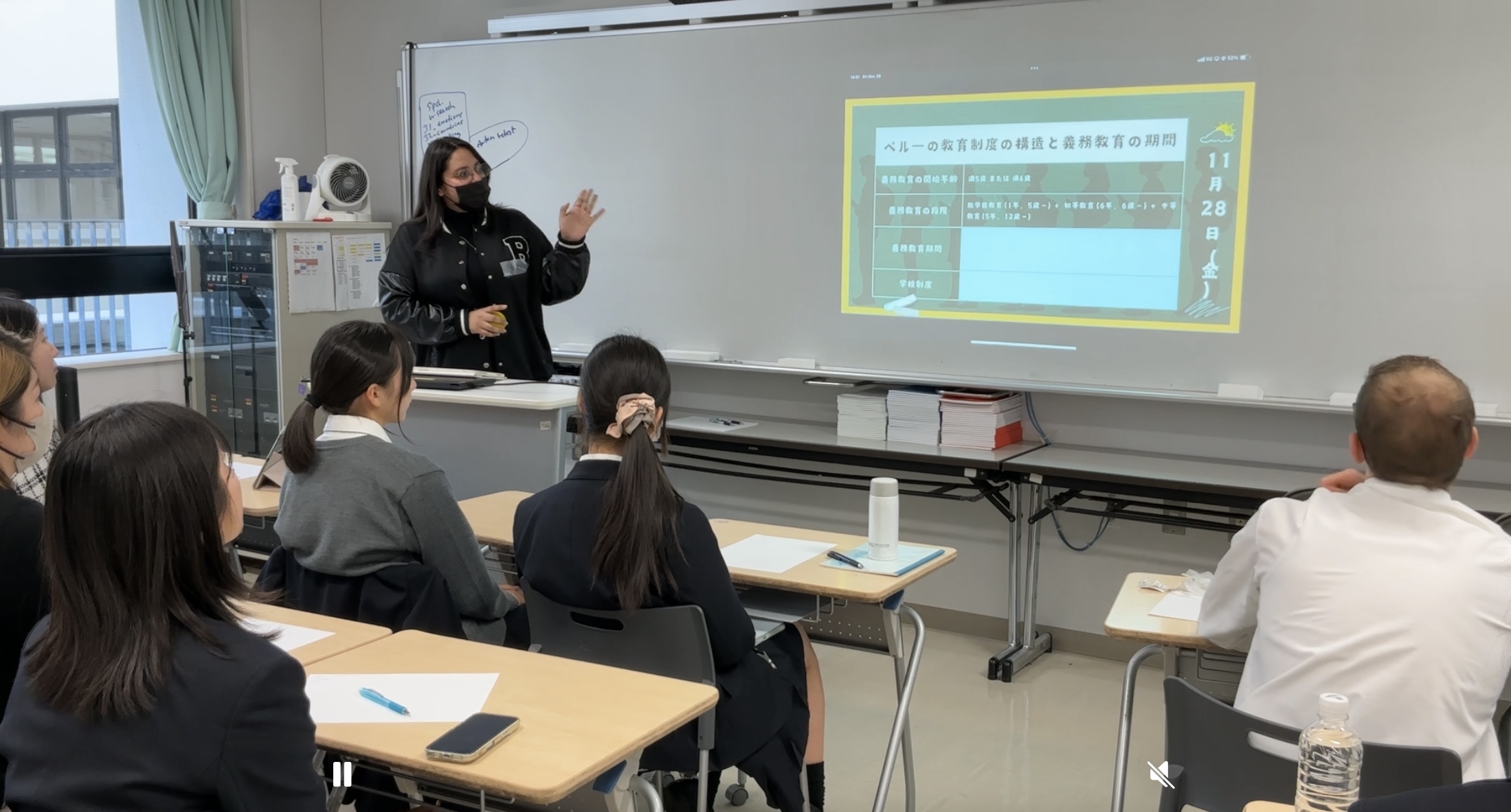 国際交流委員会では、本校に在籍する留学生以外にも海外にルーツを持つ国際的な人々との繋がりを大切にして活動を行っています。今回はその一環として「南米講座」を開催しました。遠方からブラジルにルーツのある方2名とペルーにルーツのある方2名をお招きし、生活スタイルや教育制度、学校の授業内容などにおける日本との違いについて教えていただきました。先祖が日本から南米に移住した日系移民の子孫(日系3世)の方もいらしたため、歴史を交えて日系移民に関するお話や、現代社会に残り続ける社会問題などについてもお話しいただきました。